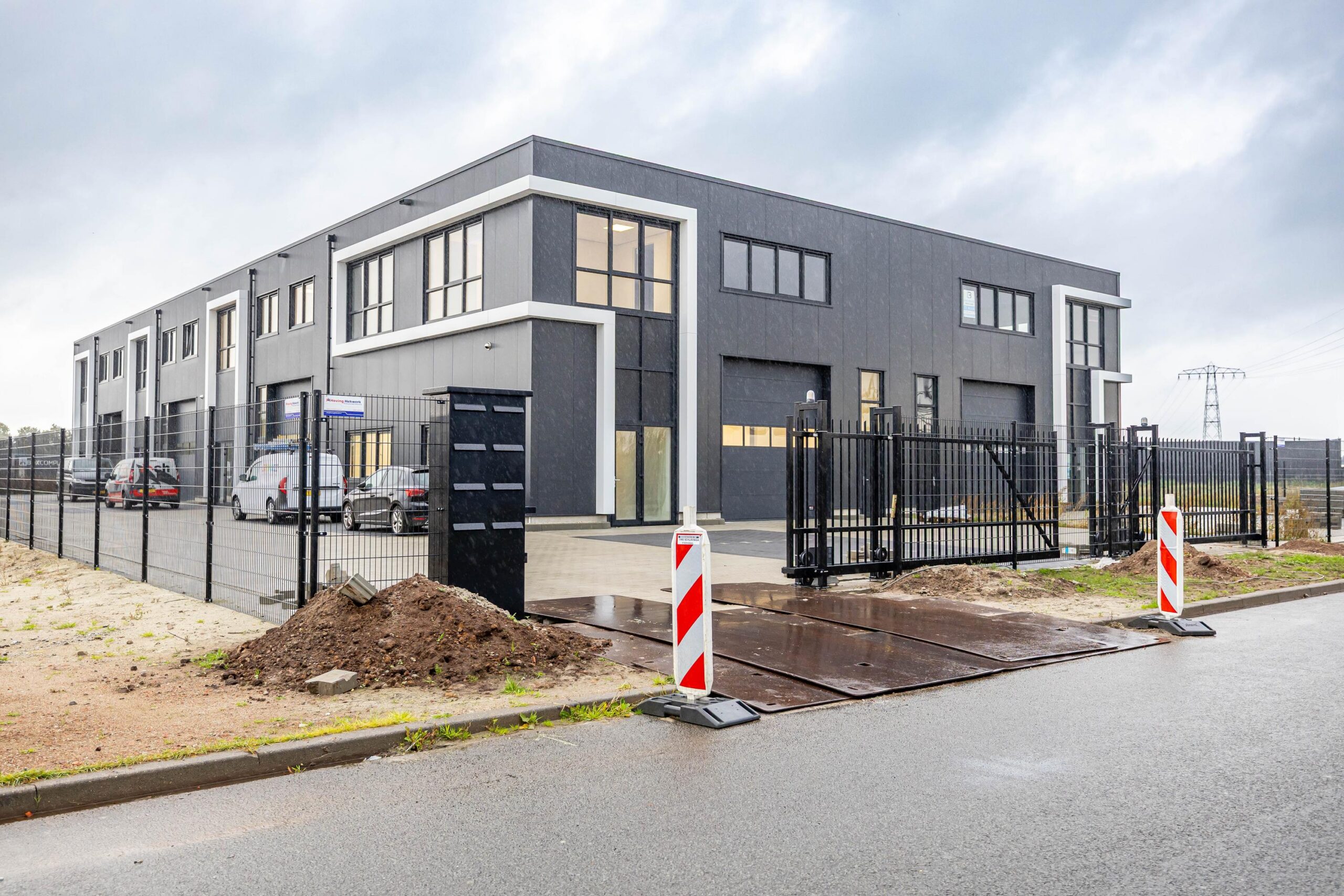 – Het geheel is voorzien van camerabewaking, glasvezel, volledig omheind met een schuifpoort die via een mobiele telefoon te openen is.