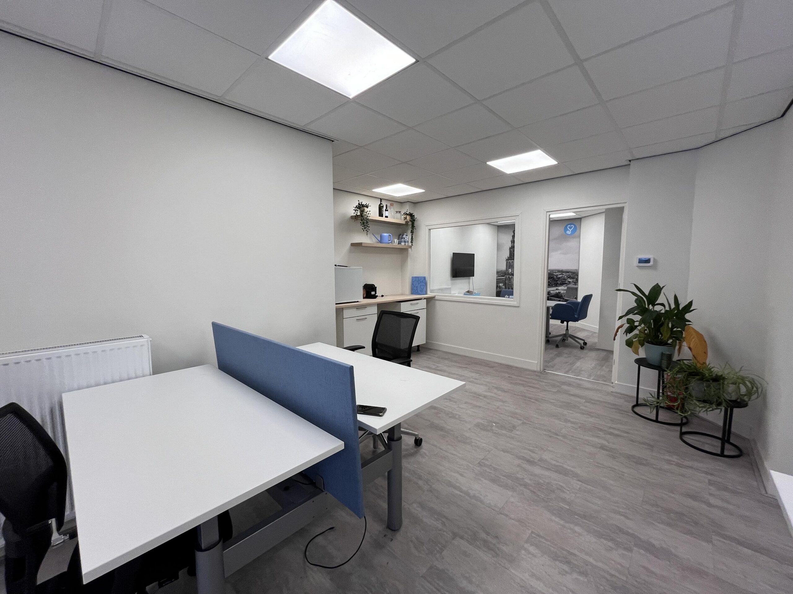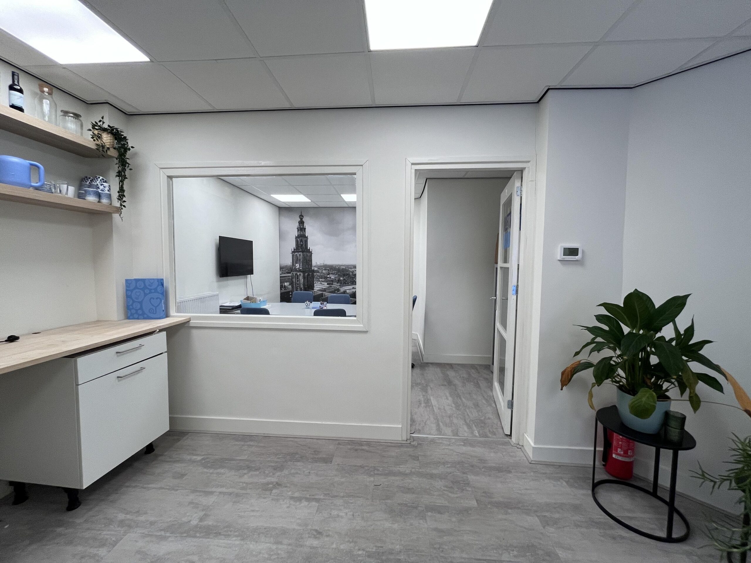 Voorzieningen: C.V. , pantry, toilet, systeemplafond met ledverlichting, PVC-vloer, spreekkamer,